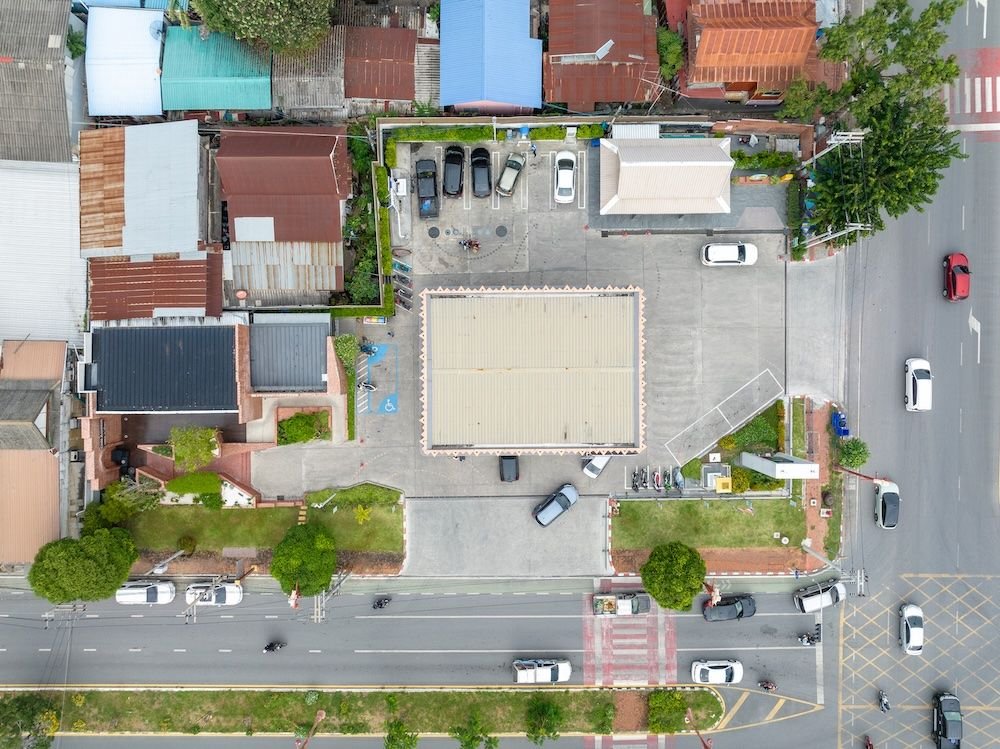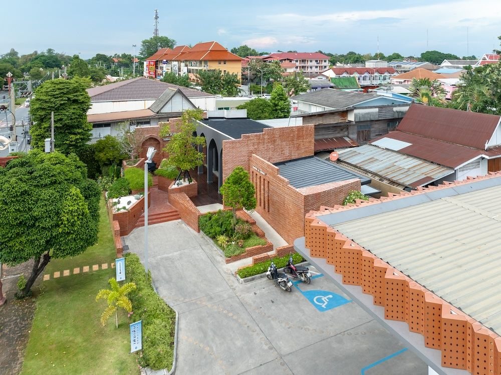 A former car wash building was replaced by Café Amazon. The café used steel structure with lightweight materials to make sure that the design loads were not exceed load capacity of existing concrete floor. Earth bricks made of local materials were used to represent elements that contribute to surrounding local identity of remains of ancient brick walls in Ayutthaya Historical Park.