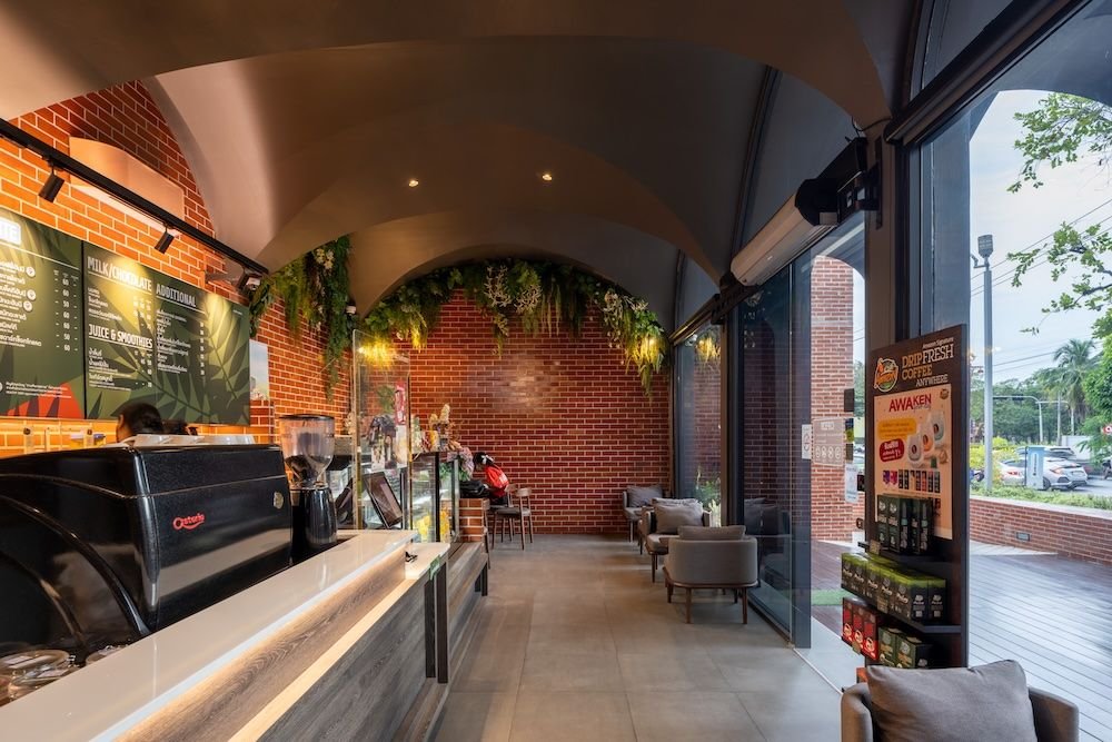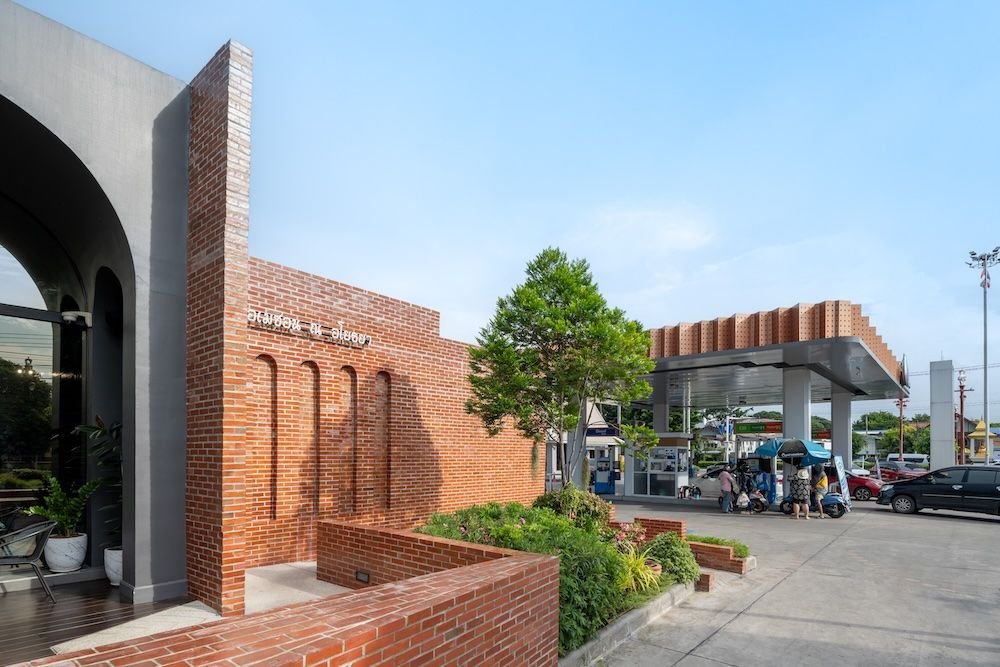 This PTT Gas Station had been in service more than 60 years and its last renovation was 20 years ago. The station located on site of an old canal route that connected Lopburi River in its north side and Chao Phraya River in its south side. Trace of the canal had been found at Wat Rajapradit Sathan. An important historical architecture found in the area was Pratu Khao Pluak Fortress, which was one of the remaining original forts that guarded the city of Ayuttaya. The fortress consisted of beautiful exposed brick walls with an arched watergate. The components of the watergate were used for design concept of Café Amazon to reflect on history and how it influenced the present.
