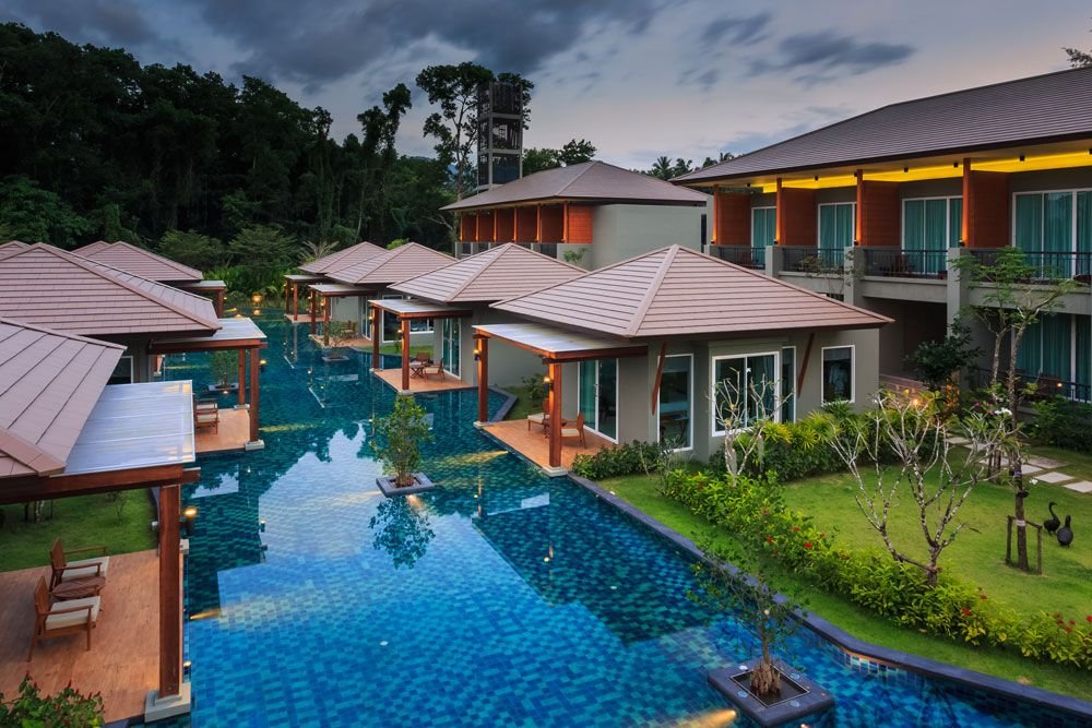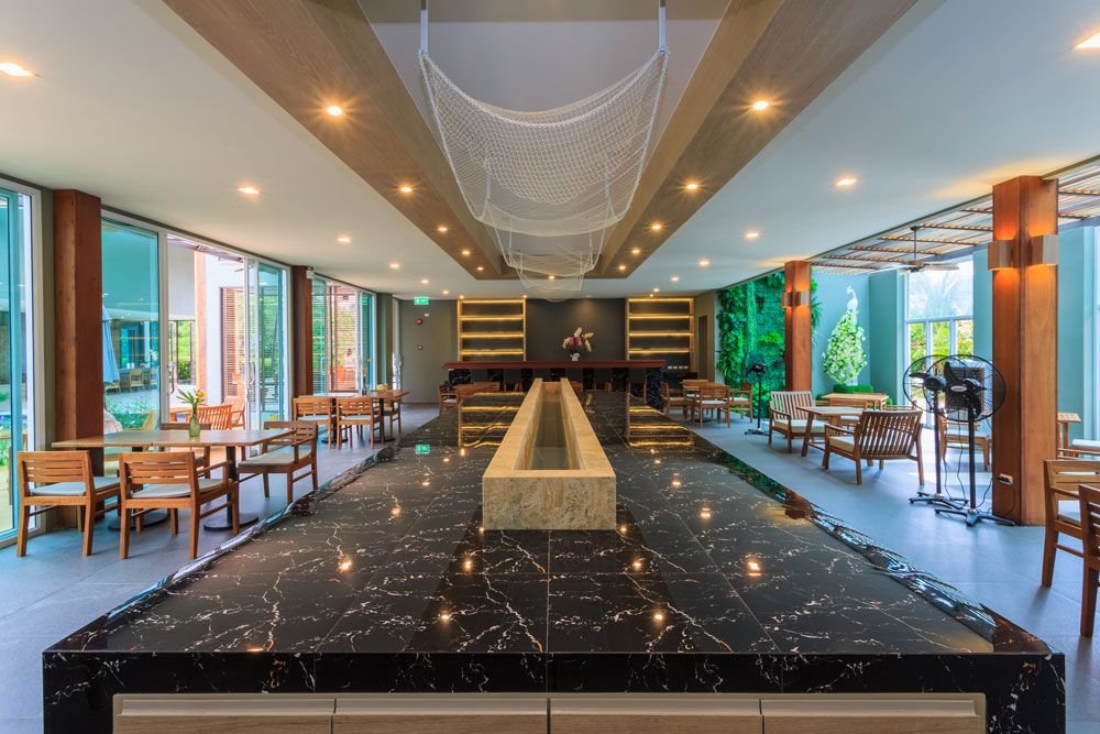 The project locates 1.2 kilometers from Bang Niang beach. The project’s site has the forest behind it, which offers the best view for every parts of the resort. The master plan is designed with an open space in order to capture the view from the forest and bring in the nature into the resort. The lobby entrance canopy looks like the city gate as it functions as the main entrance that opens and welcomes guest into the forest on the background.