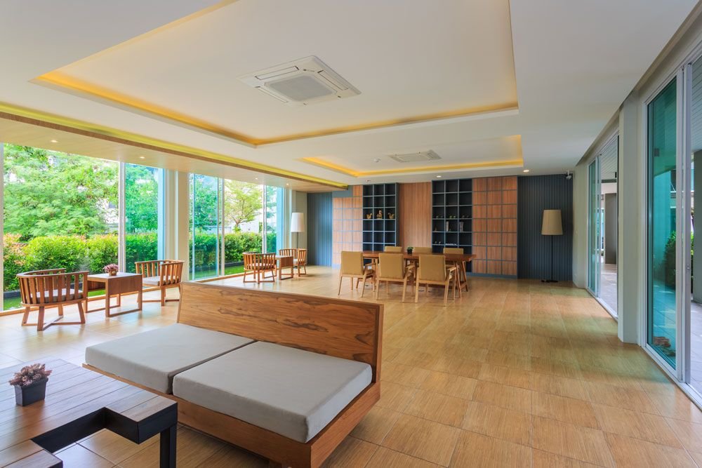 The front building consists of front of house, black of house and standard rooms with an access to the swimming pool on the first floor. The breadth side of the buildings has been uniquely arranged to receive wind from the south and the narrow strip of the buildings facing east and west to prevent the heat from the sun. Each room has a view of the pool and the forest on the background.